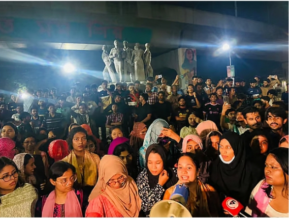 ঢাকা বিশ্ববিদ্যালয়ের হলগুলোতে ছাত্রদলের কমিটি ঘোষণার প্রতিবাদে শুক্রবার মধ্যরাতে রোকেয়া হলের ছাত্রীরা হলের তালা ভেঙে বেরিয়ে এসে রাজু ভাস্কর্যের সামনে বিক্ষোভ করেন